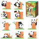 - Design adorable et détaillé des pandas grimpant aux arbres fruitiers.
