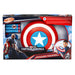 Age: 5+. This Captain America toy includes 3 NERF darts that can be stored in the front of the launcher. To activate, insert the dart, pull the lever while unfolding the wings, and press the button on either side of the lever to launch! The Captain America Dart Shield also features an adjustable strap.